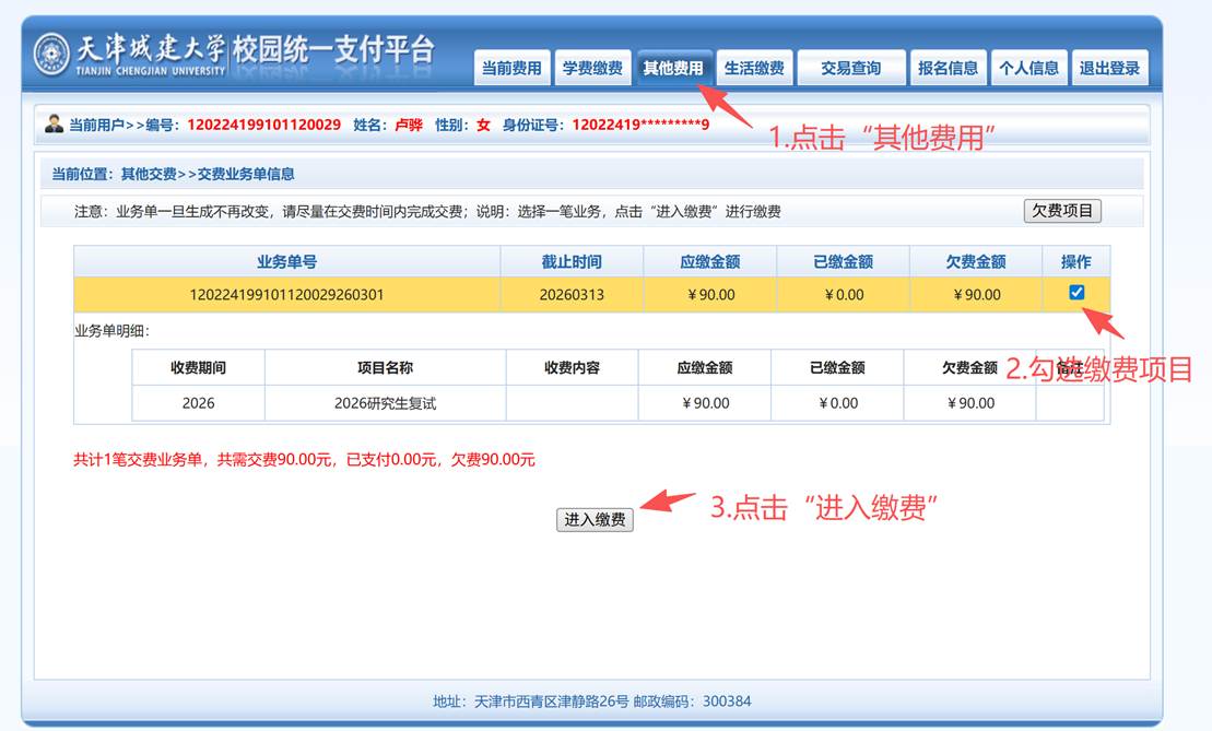 第3步 进入缴费