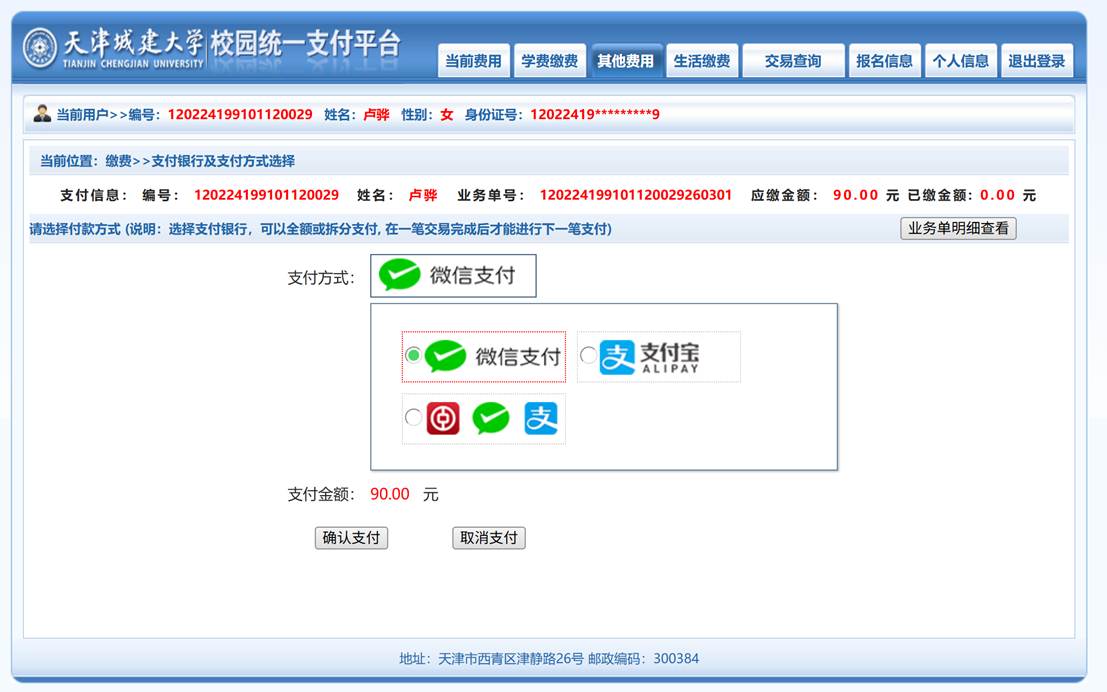 第5步 完成支付,并按学院要求提交支付证明。