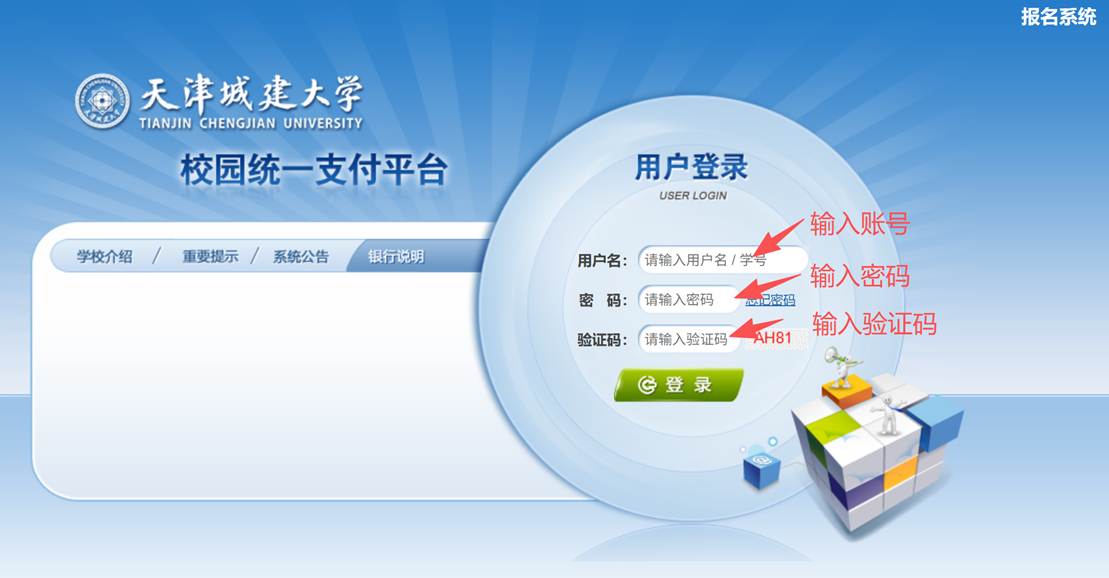 2.缴费方式:通过“天津城建大学校园统一支付平台”(以下简称“支付平台”)进行缴费。